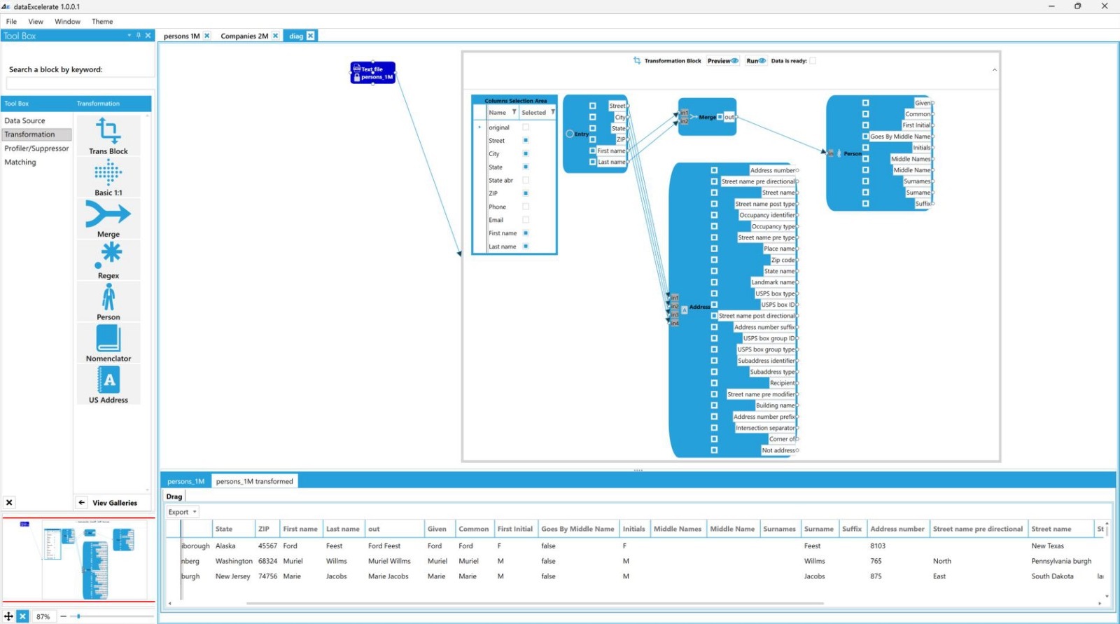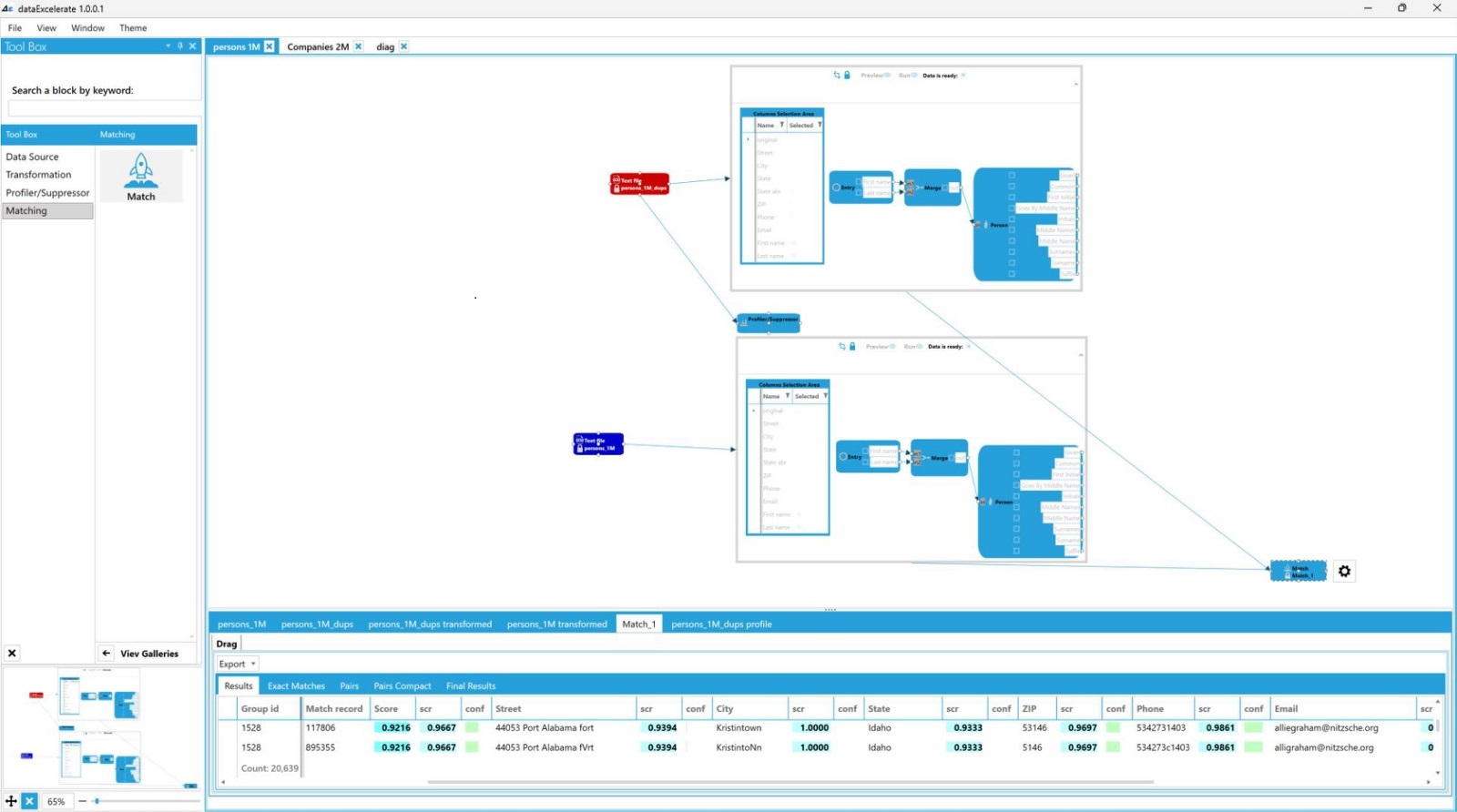 Overcome complex problems that come with large numbers of data records, multiple data sources and errors in the original data with tools that are automated, optimized and that give you a clear visual representation of your data.